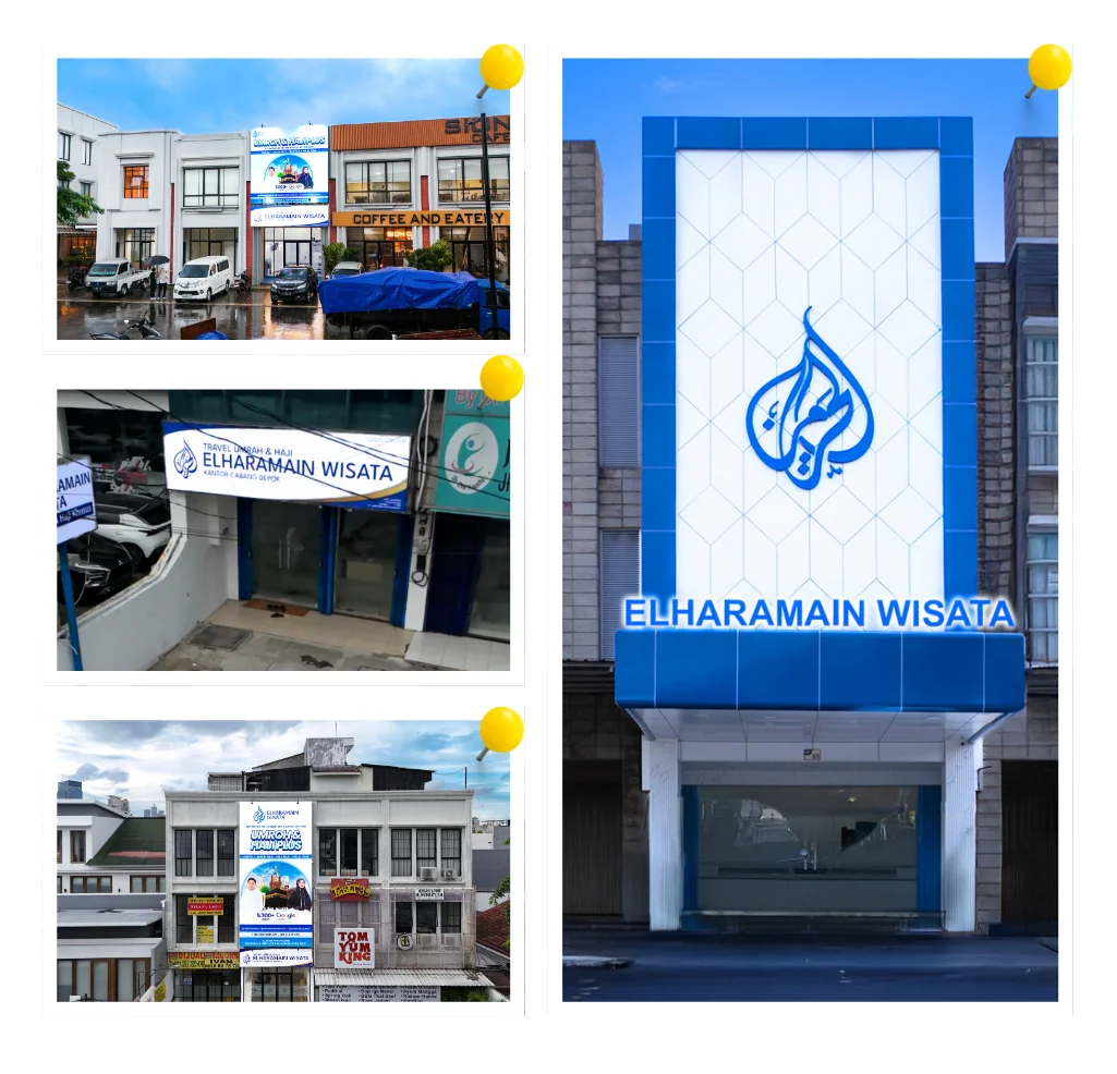 Elharamain Wisata menghadirkan layanan Haji Premium dengan fasilitas unggulan, hotel berkualitas, maskapai terbaik, pembimbing berpengalaman, pelayanan personal, serta sistem perjalanan terencana demi ibadah yang aman, nyaman, khusyuk, dan penuh makna. Elharamain wisata memiliki 6 Kantor di Jakarta, Bekasi, Tanggerang, Depok, Bogor & Bandung.
